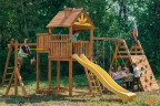 Детям постарше безусловно понравится яркая двухволновая горка со скатом 2.7 метра. А для активных и подвижных в этой площадке предусмотрен устойчивый модуль с рукоходом